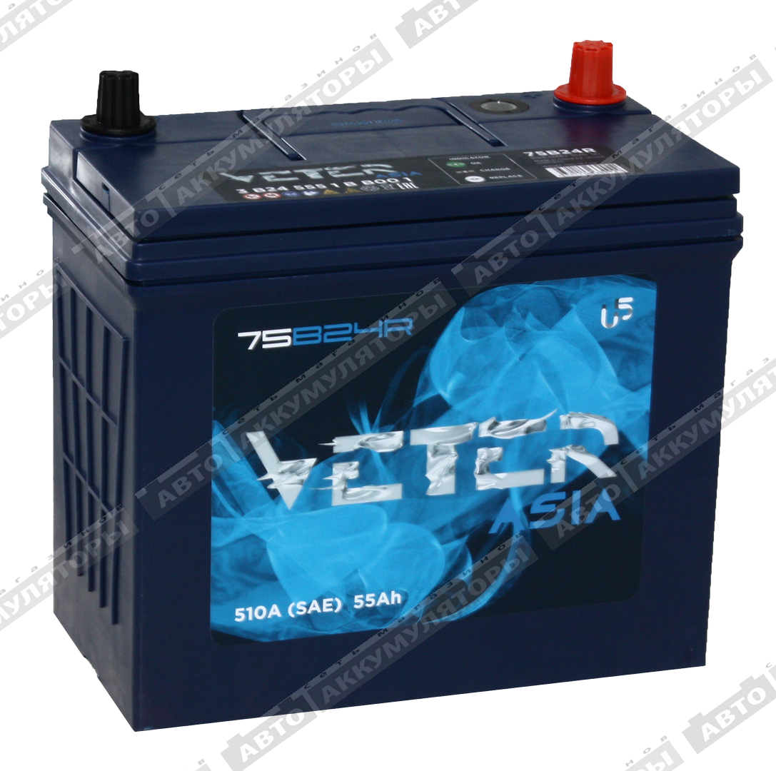 Аккумулятор Veter NEW ASIA 6СТ-55.1 VL (75B24R)