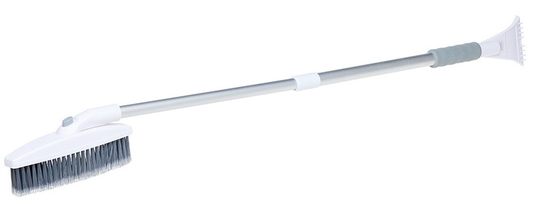 Флагманская модель щетки для уборки снега и льда оснащена телескопической ручкой с MAX длиной 123 см. Щетка имеет поворотную голову с трехслойной щетиной, которая позволяет с двойным удобством убрать снег с автомобиля. Распушенная щетину, которая позволяет проводить очистку снега с лакокрасочной поверхности автомобиля максимально деликатно. Рукоятка сделана из алюминия, специальную эргономичную вставки - из морозоустойчивого поролона, которые делают эксплуатацию изделия удобной даже при низком температурном режиме. В состав рукоятки входит прочный пластик, который не подвержен перепадам температур. Для особо сложных загрязнений и льда предусмотрен скребок на другом конце щетки.